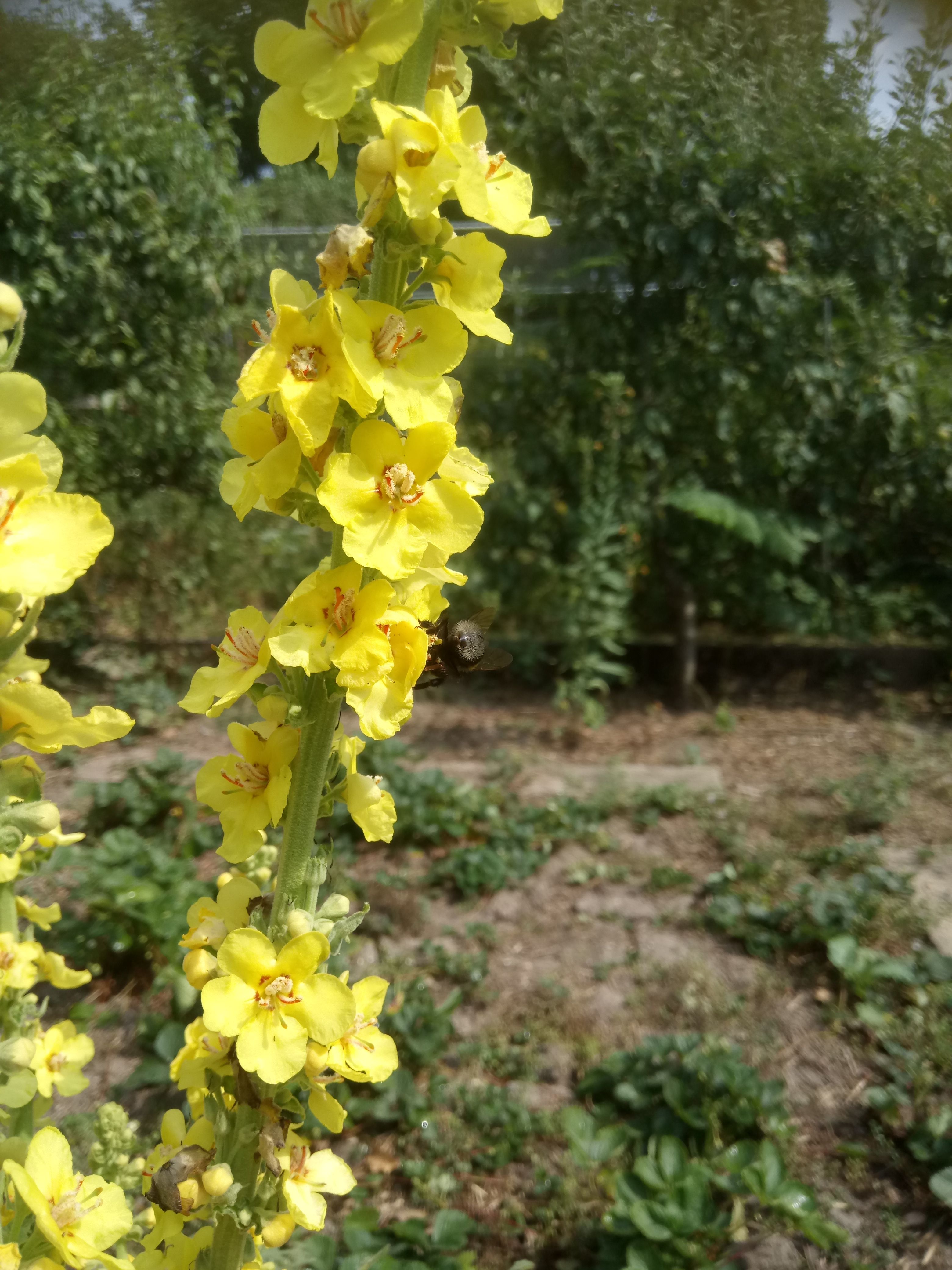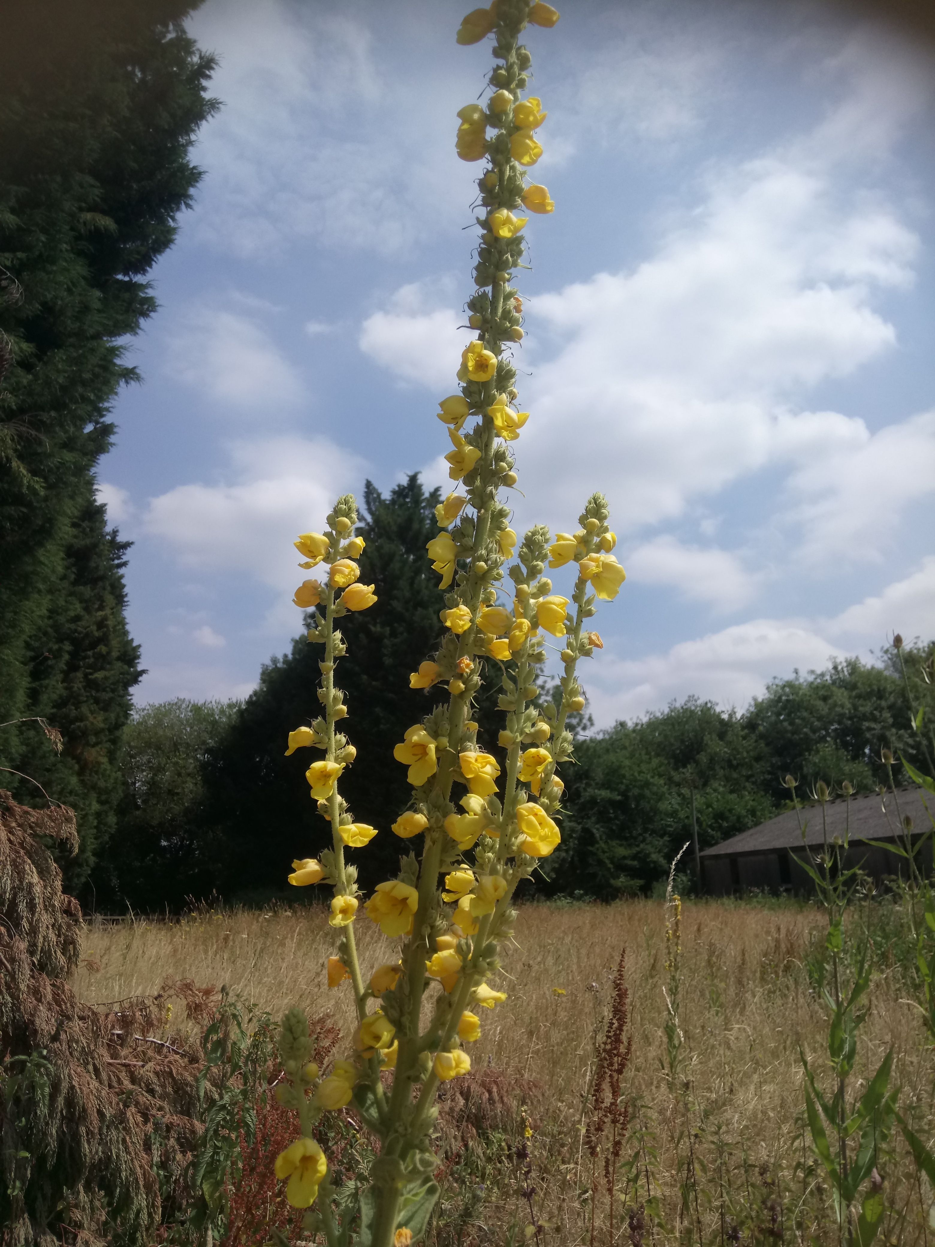 A native of Europe, North Africa and Western Asia but naturalised in the US and Austraila, Mullein is a tall and stately looking biennial herb belonging to the Scrophulariaceae family (same as foxglove and figwort). In the first year it forms a base rosette of greyish green downy leaves and the flowering stalk appears in the second year, with delicate pale yellow flowers appearing from nobbly flower cases. It then sets seed and begins it life cycle all over again. It is a very tall plant growing up to 2.5 metres or so in its second year and is often seen in meadows, roadsides and waste ground, often seen along railway tracks in the UK. It prefers a sunny site with minimal water requirements.