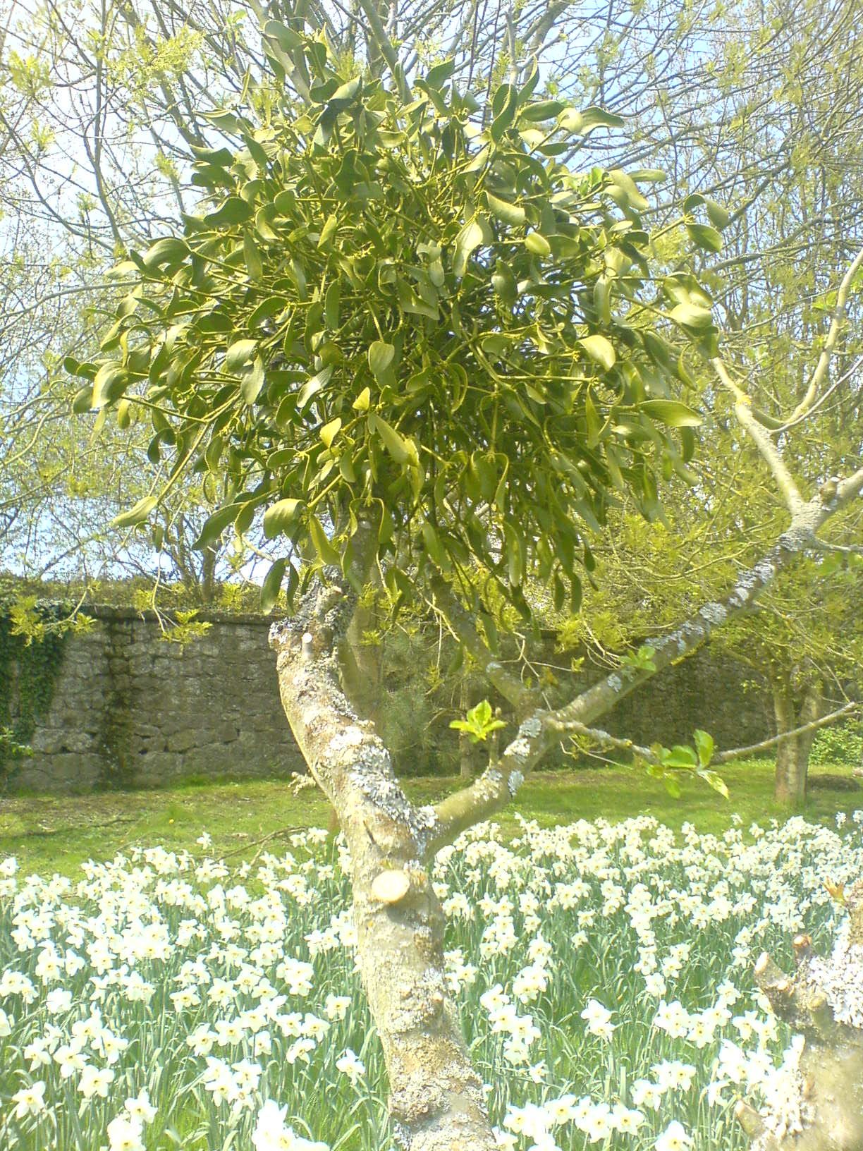 If you are lucky enough to have some growing on trees on your land then you can take a leaf from the Druids book and harvest in the old traditional way... on a waxing moon, cut the mistletoe from the tree branch (using a golden scythe if you have one!) and have someone underneath to catch the falling mistletoe in a sheet before it hits the ground. It was believed to lose its potency if allowed to come in contact with the ground.