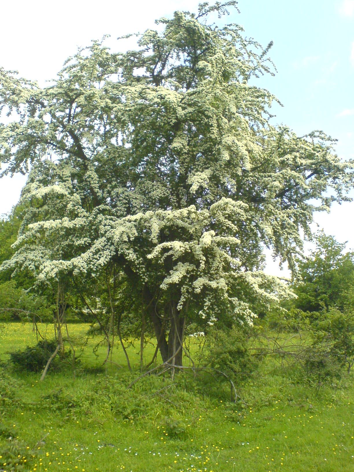 It is a small tree or shrub often seen in hedgerows or sometimes as a stand alone tree. it is a member of the rose family and grows to around 35 feet if uncut. It produces sprays of distinctive smelling white flowers (to me they smell of rotting flesh!) in spring (May in particular) followed by bright red berries or 'haws' in the Autumn. The branches are laced with sharp thorns.